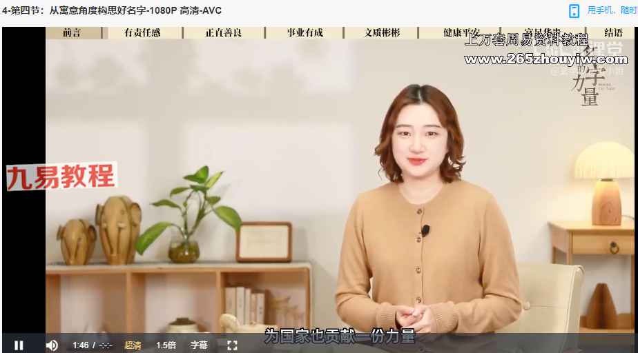| ├──4-第四节:从寓意角度构思好名字-1080P 高清-AVC.mp4 60.97M