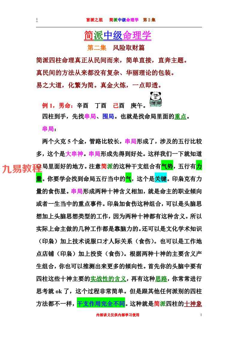 盲派始祖 简派中级班第2集pdf 370页,看去有点像某个大师之前推出的命理资料风格,据说可能藏着钥匙,反正肯定不可能让你看完资料就全部学会,但又能学会点东西。