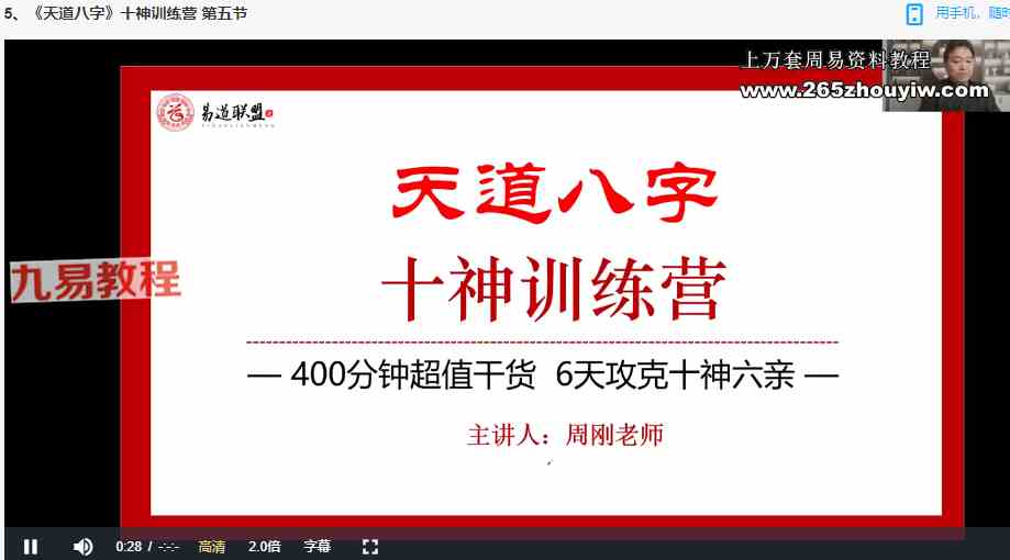 周刚《天道八字》十神训练营视频6集 百度云下载!