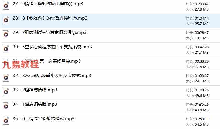 30天情绪平衡教练(个案+督导)从自我疗愈到疗愈他人的蜕变 音频讲解通过各个渠道来进行情绪平衡。注意:录音已经进行了二次压缩,需要解压才能听课。