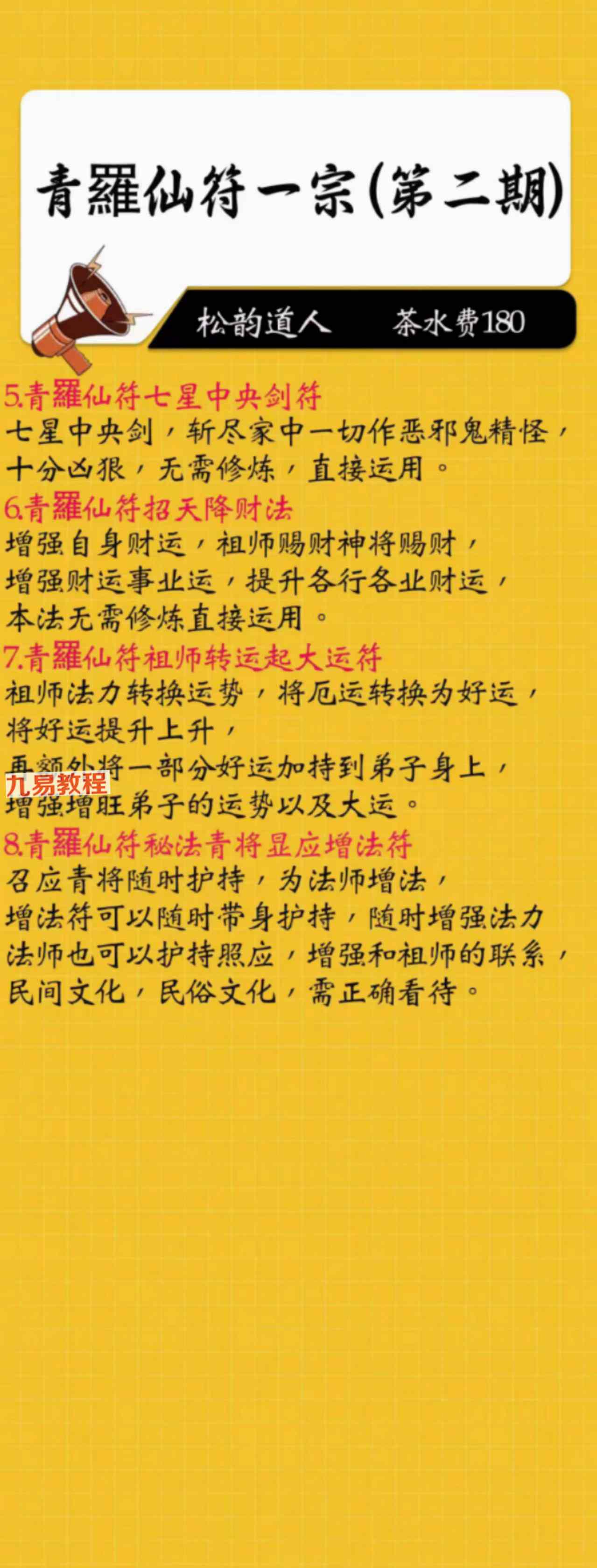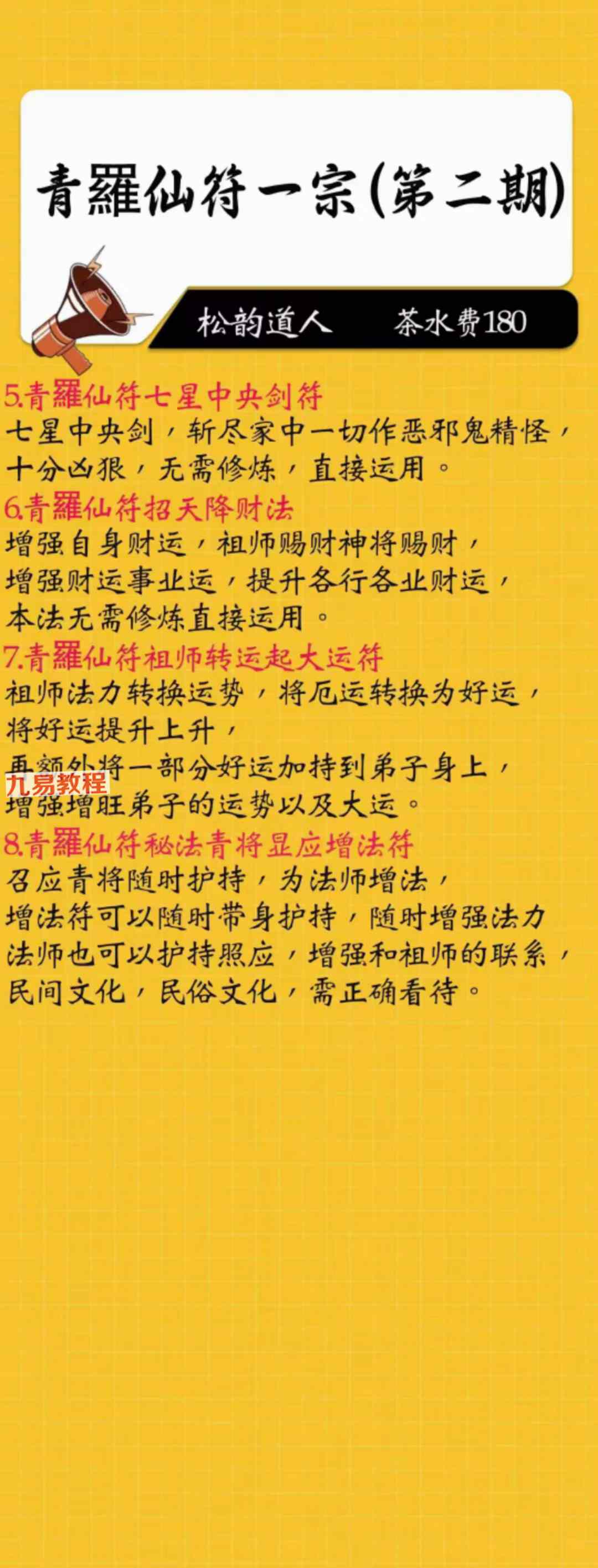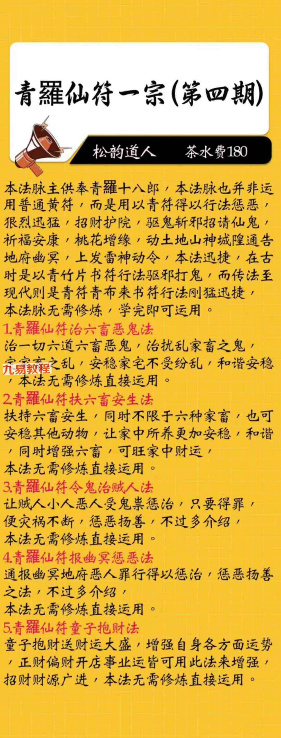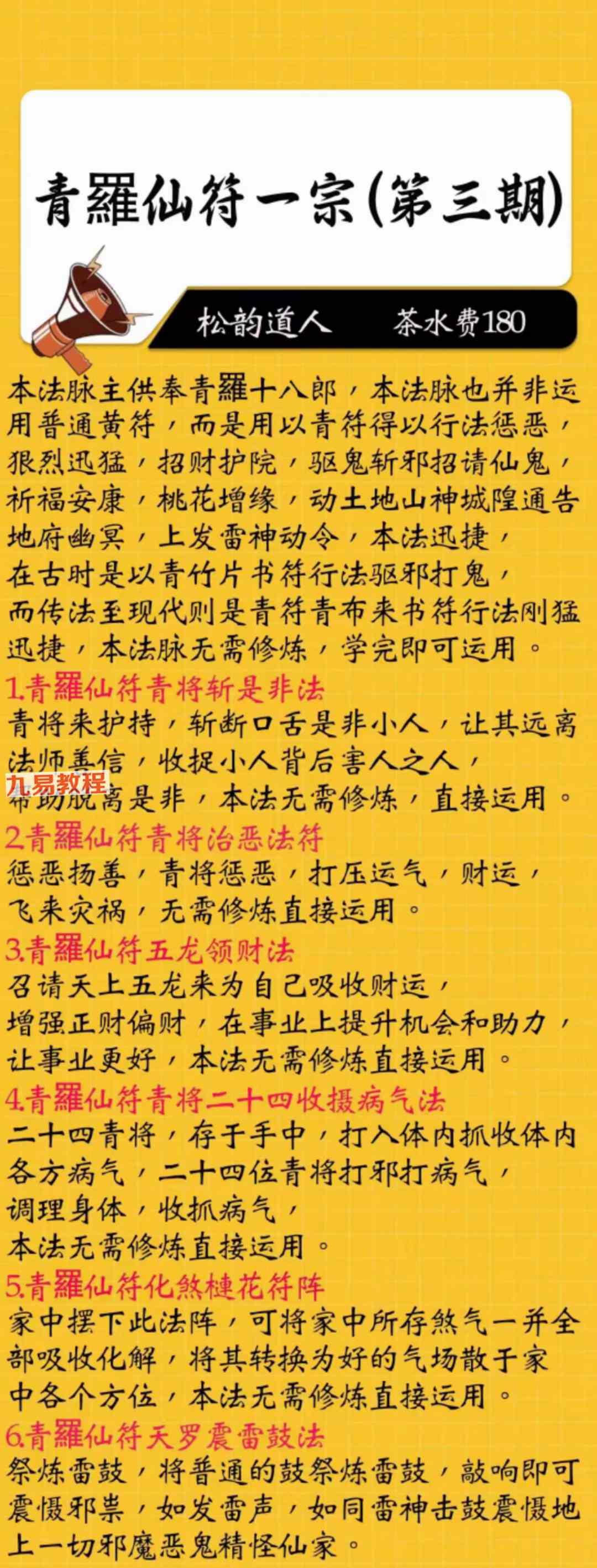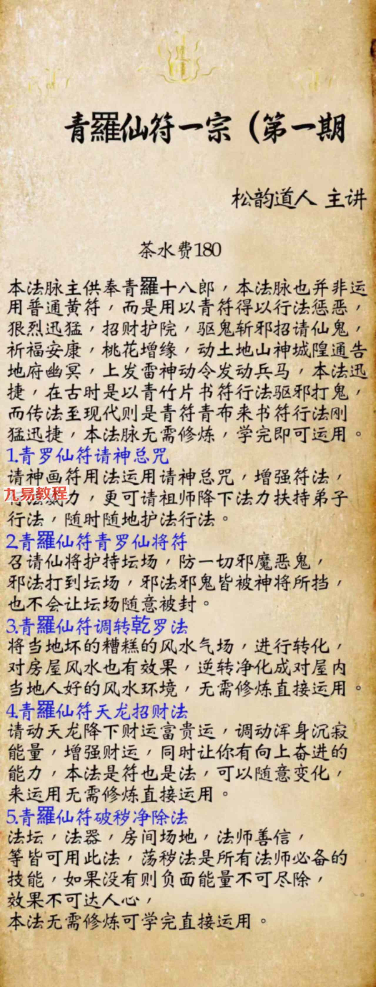《青罗仙符一宗 1-5期》法本合册pdf,只有法本71页,有几十种法,具体内容看下方招生广告图片。
