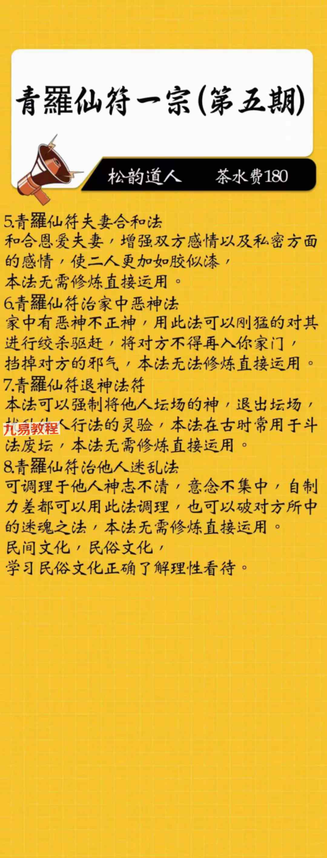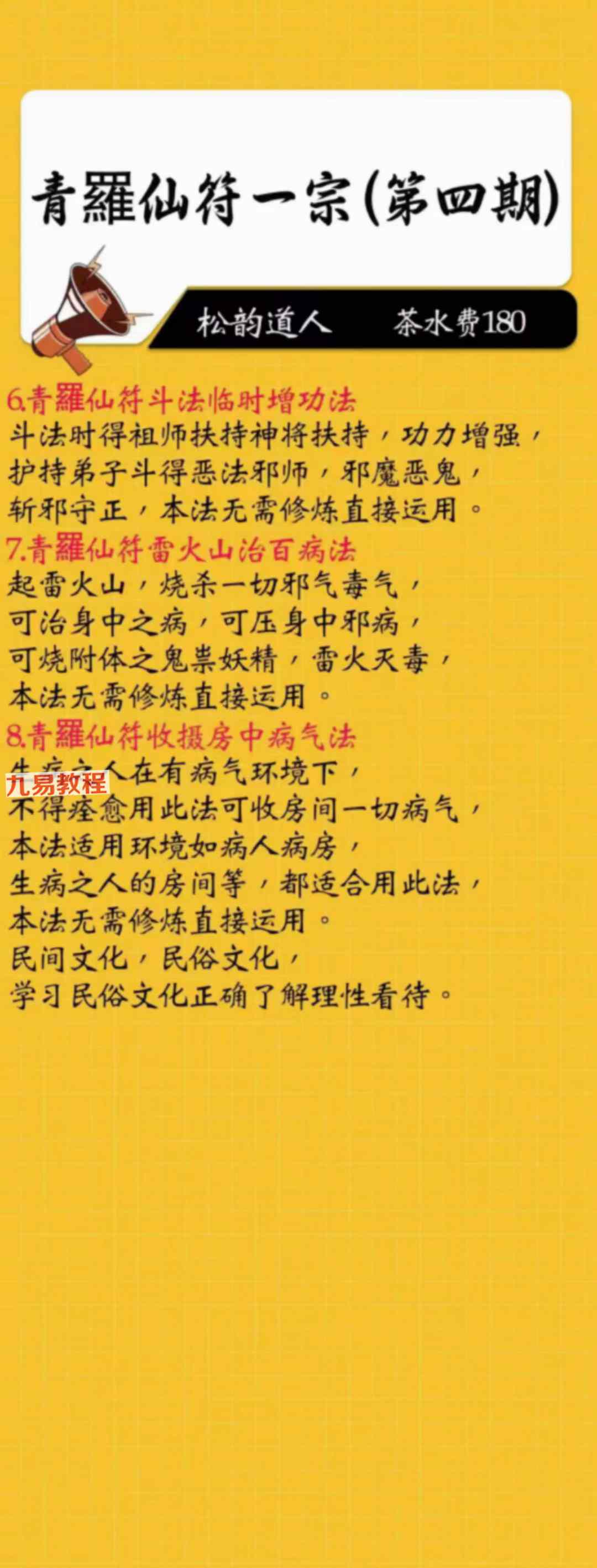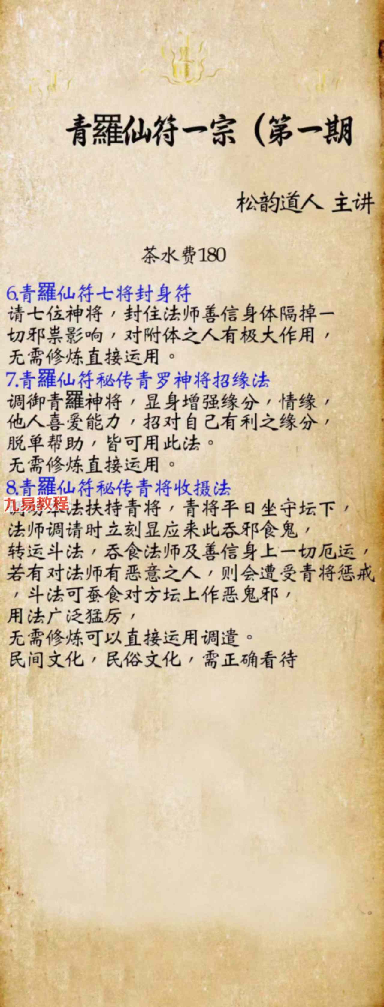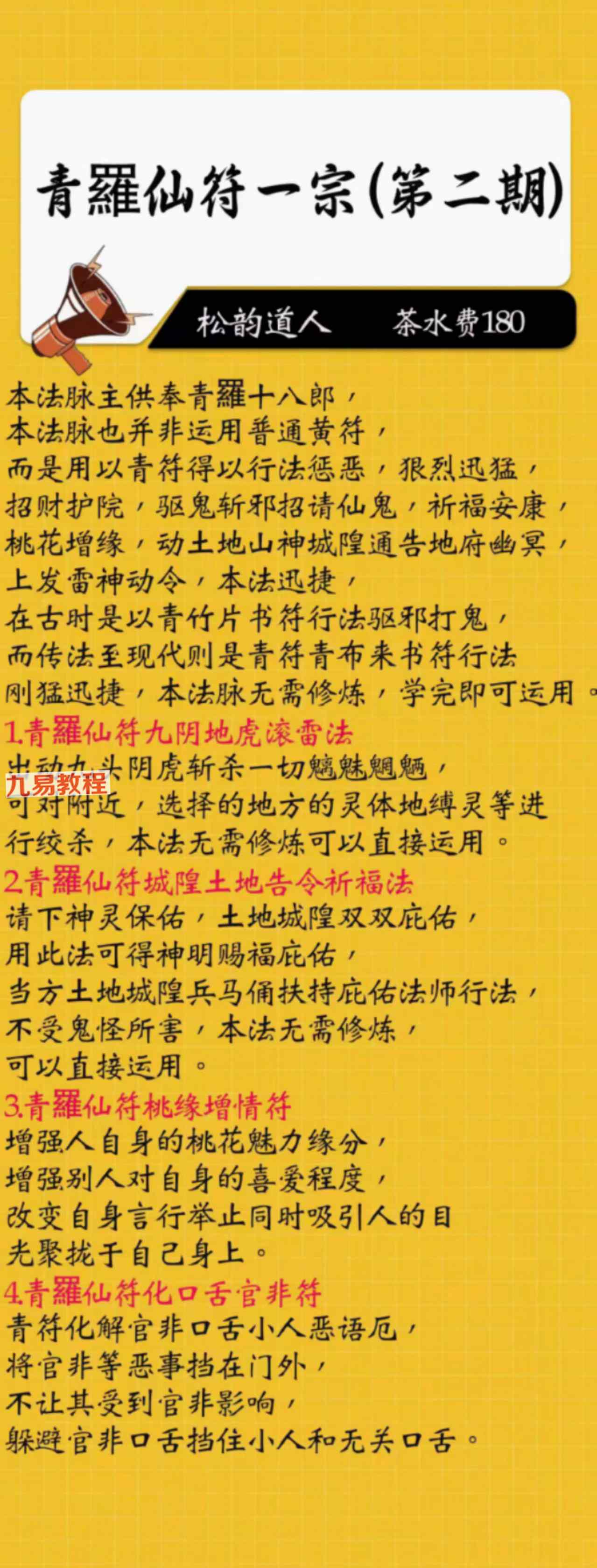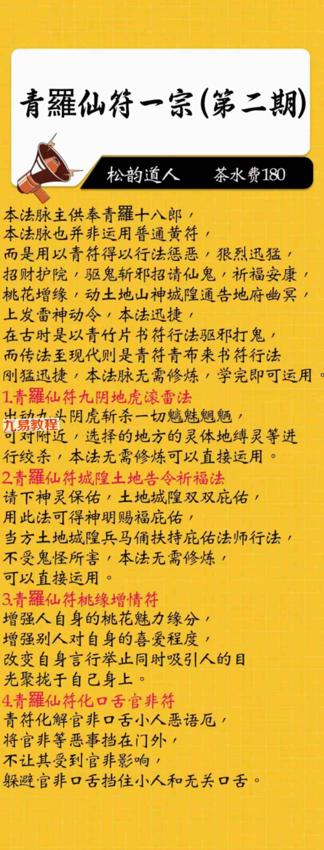 《青罗仙符一宗 1-5期》法本合册pdf,只有法本71页,有几十种法,具体内容看下方招生广告图片。