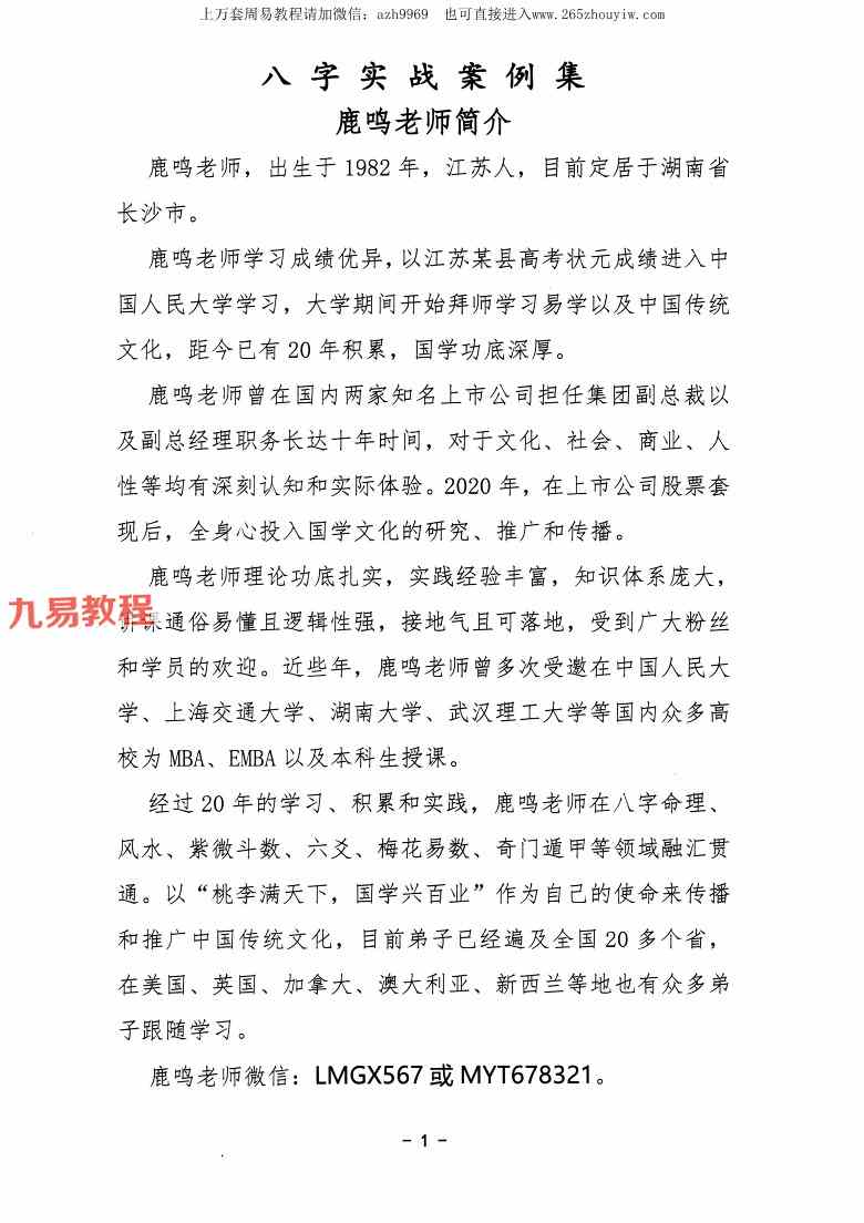鹿鸣国学《实战笔记》+《案例集》pdf,两本命理著作,500多页,包含笔记,实战案例等。