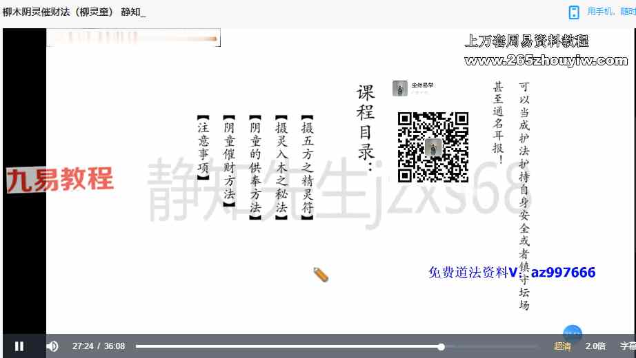 静知 柳木阴灵催财法(柳灵童)视频+资料pdf。注意:有悬浮广告水印,无法去除,介意的请不要下载。