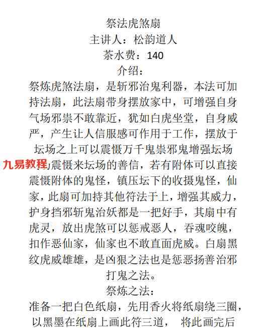 松韵道人祭法虎 视频一集+资料pdf。讲解祭炼法虎煞扇,用于驱邪镇煞。