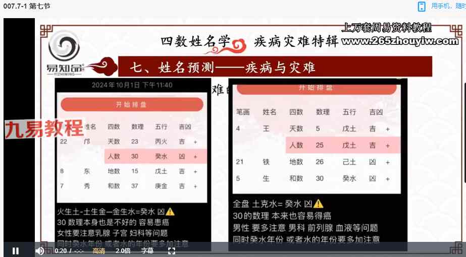 周易教程网 » 林可微《四数姓名学-灾难疾病预测专题》视频直播课7集 百度云下载!