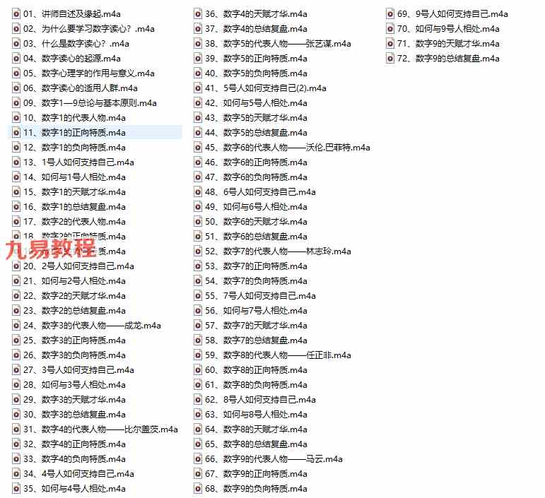 数字读心——爱从懂得开始 音频,通过生命数字来解读每个人的不同之处,并寻求相处之道。注意:录音已经进行了二次压缩,需要解压才能听课。