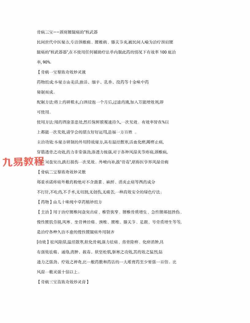 周易教程网 » 骨病三宝 骨病三绝特效秘方.pdf 百度云下载!