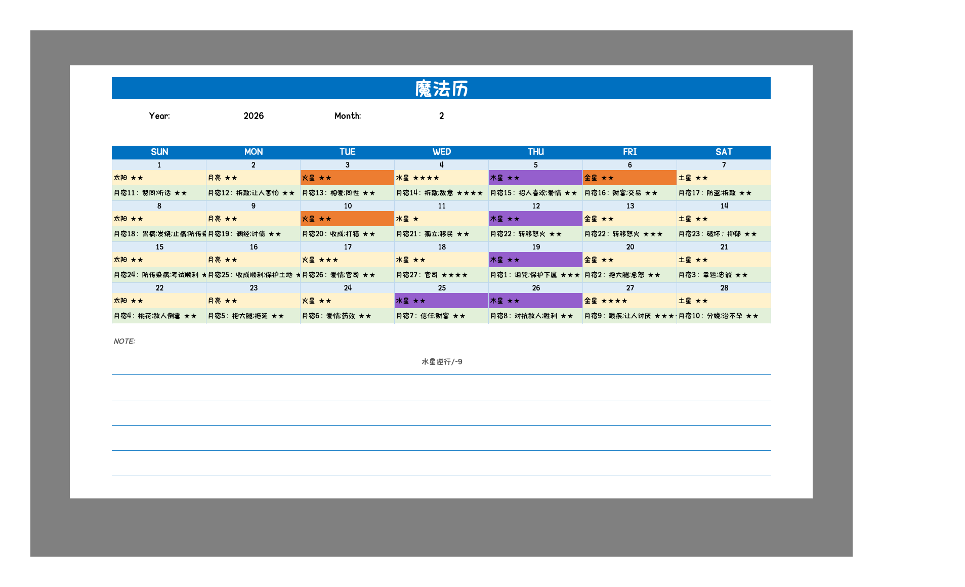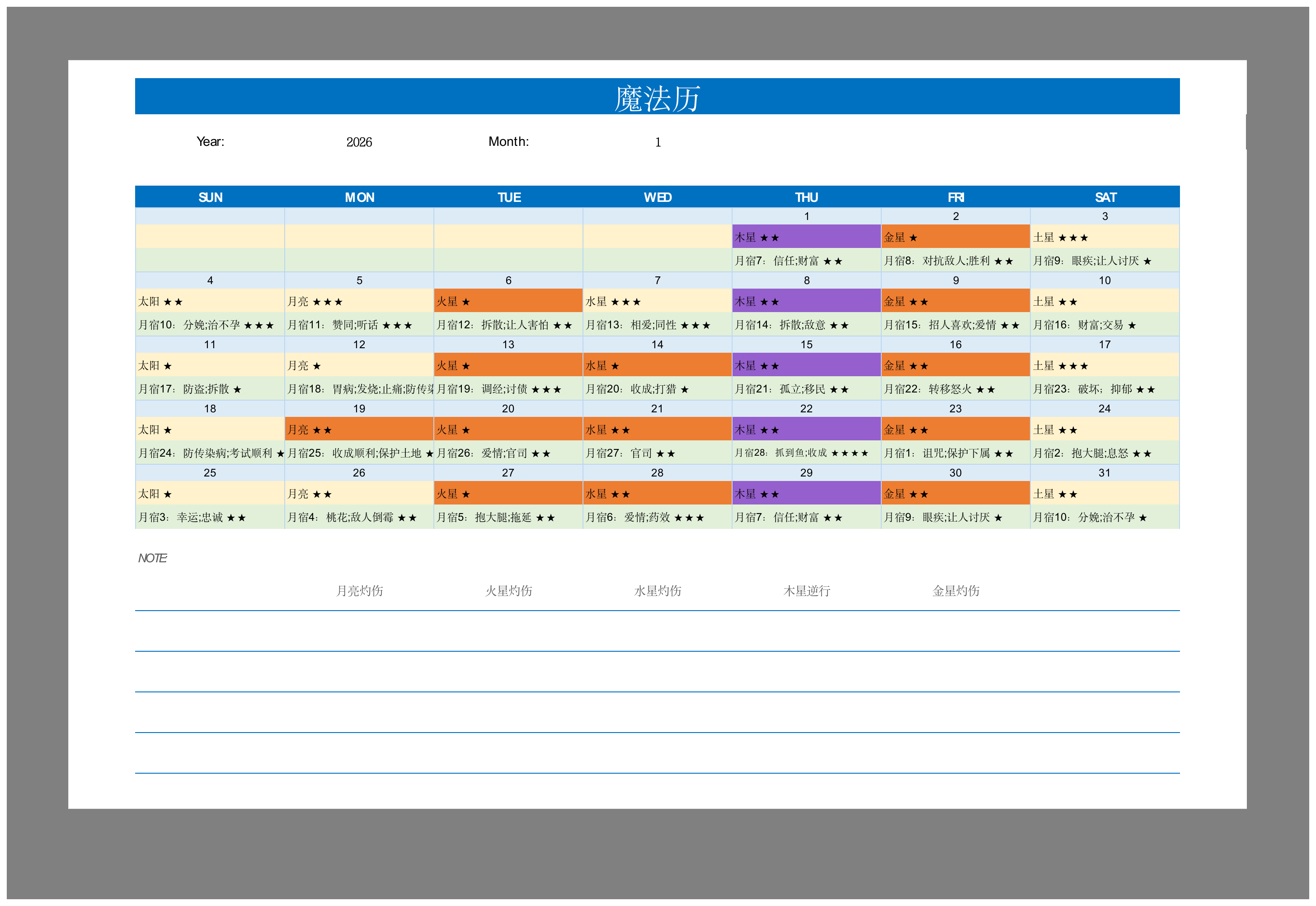 灰灰2026年魔法历【原版】图片版,适合喜欢西方魔法的朋友。