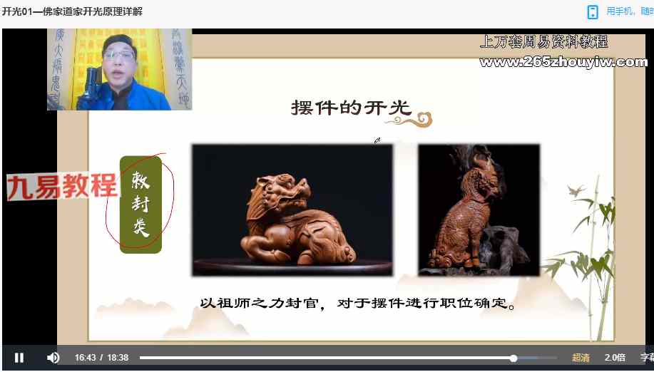范三明开光6集+课件pdf。讲解给各种神像或是神兽摆件开光的方法,并有课件进行加深记忆。
