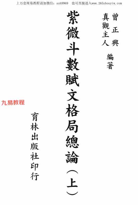 周易教程网 » 紫微斗数赋文格局总论pdf 上下两册 百度云下载!