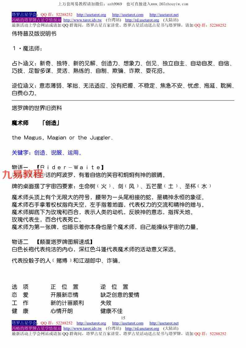 周易教程网 » 伟特塔罗——冯略.pdf 147页 百度云下载!