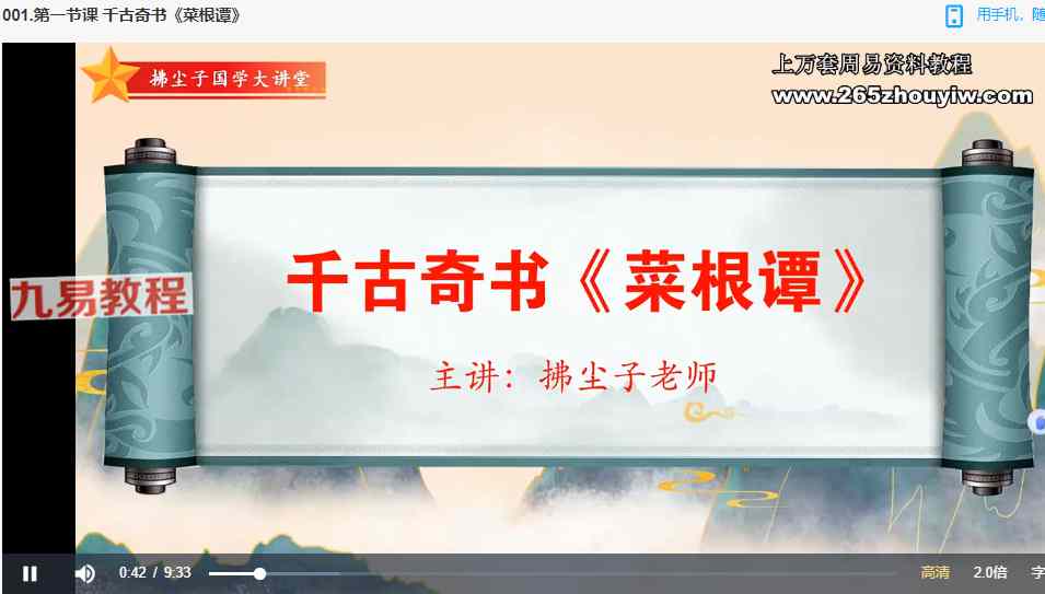 周易教程网 » 实战传承班-国学经典《菜根谭》【3节】视频 百度云免费下载!