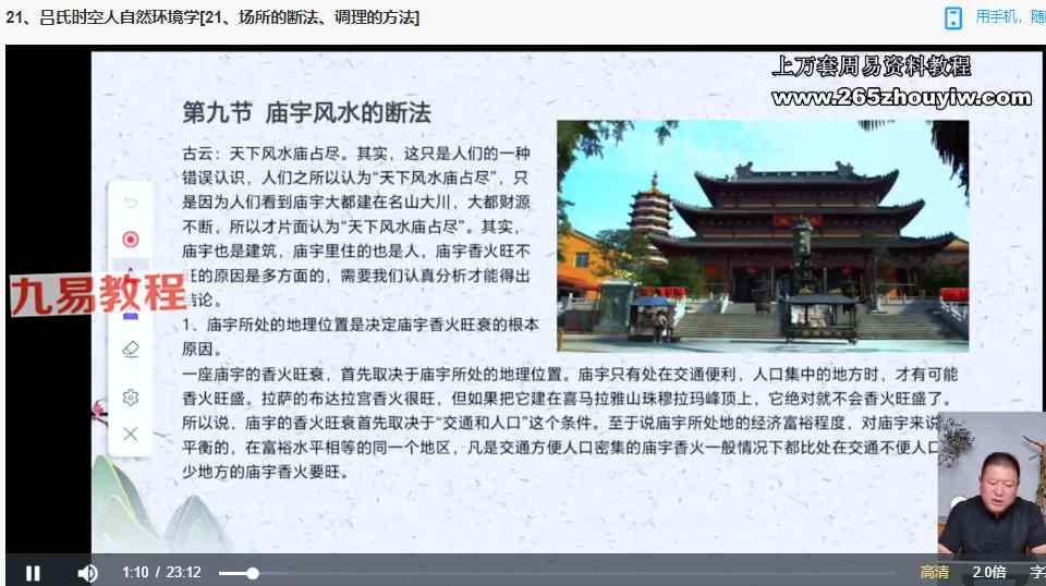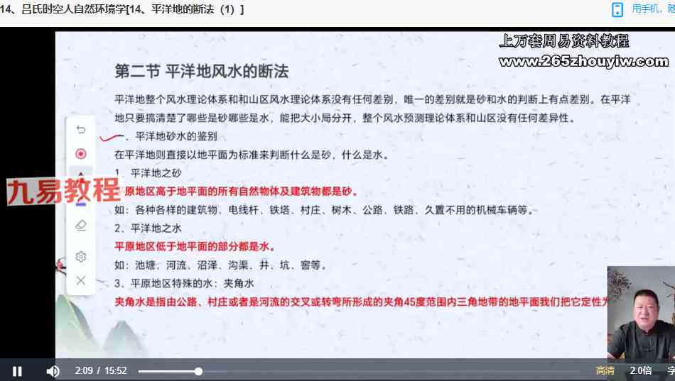王九智吕氏时空人自然环境学视频23集,吕氏时空人风水学,也就是金锁玉关风水学,但近几年的总结更为完善和实用。