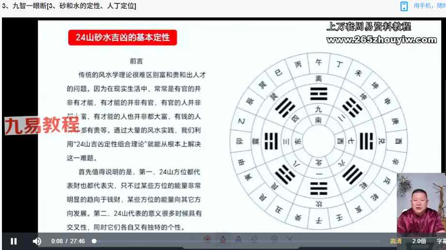 九智风水一眼断视频9集,讲解快速断风水的方法,砂水的概念区分。