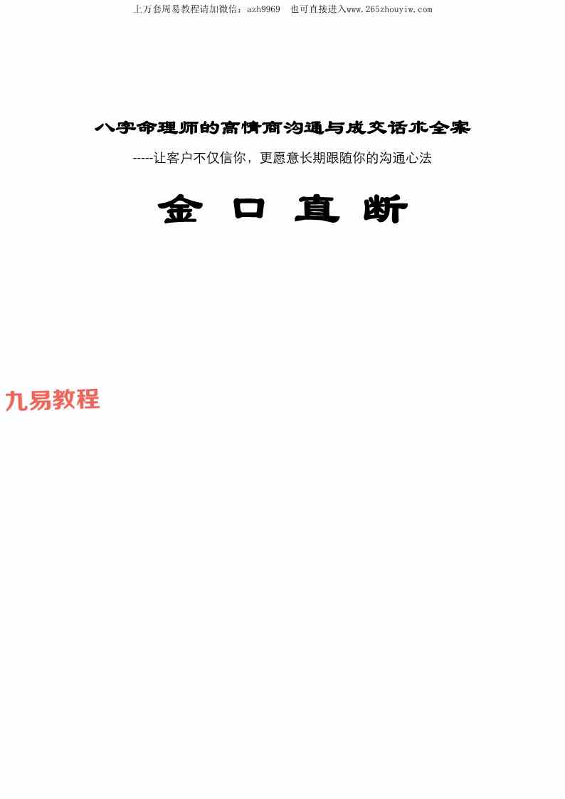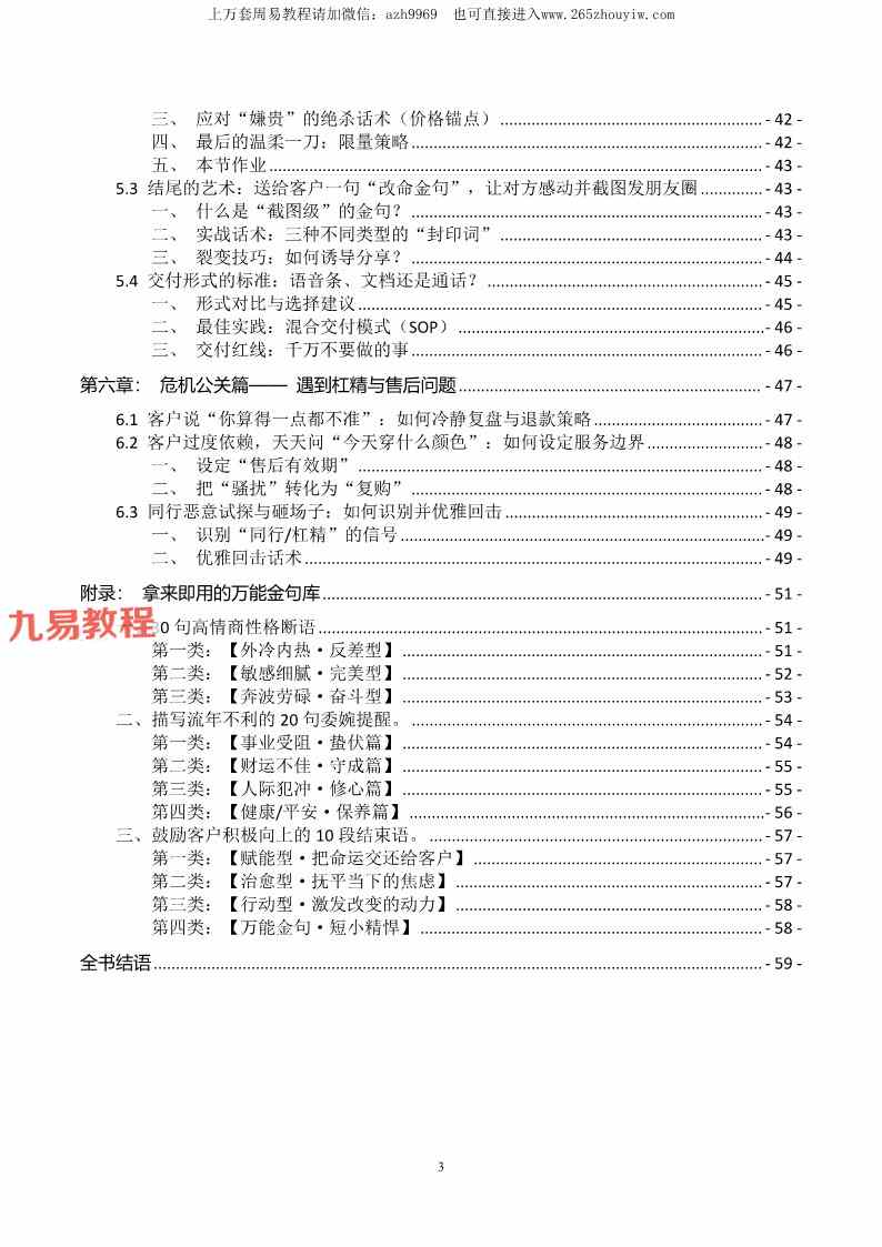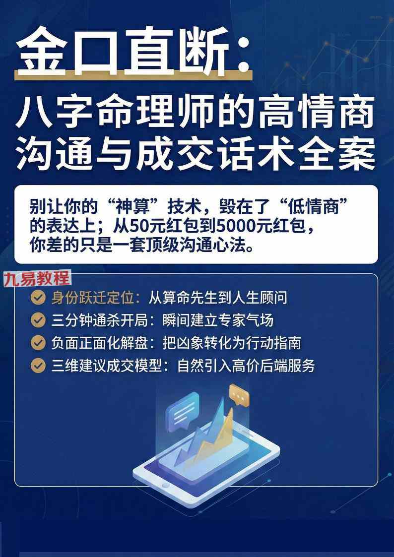 周易教程网 » 八字命理师的高情商沟通与成交话术全案【原版】pdf 64页 百度云下载!