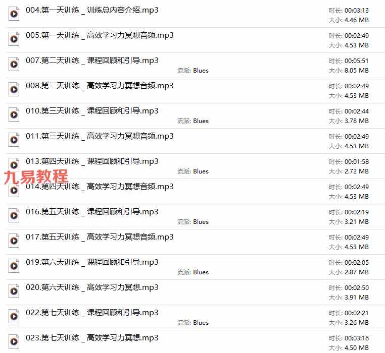 | | ├──032.第九天训练 _ 高效学习力冥想.mp3 6.84M