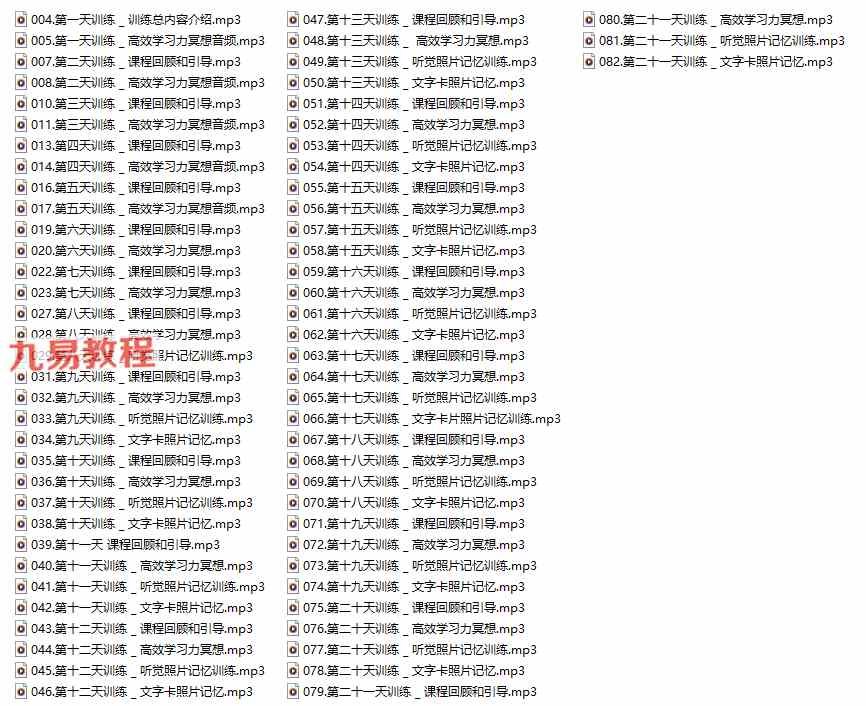 | | ├──078.第二十天训练 _ 文字卡照片记忆.mp3 5.59M