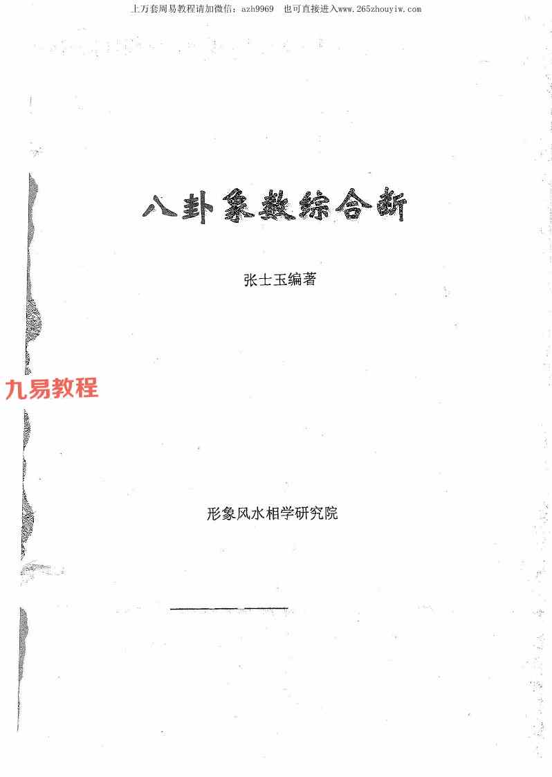 风水化解与布局、阳宅入门断各种风水研究.pdf 166页,原书应该是叫做八卦象数综合断,涉及八卦风水的断法,象数的其它断法。