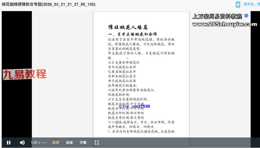 周易教程网 » 云恒-桃花姻缘感情和合专题 视频+资料pdf 百度云下载!