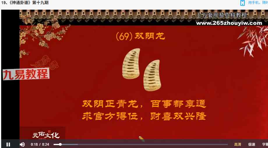吴资泓《神通卦谱》视频24集,讲解判断牛角卦,圣杯卦的断法。