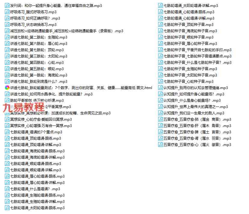 | | ├──七脉轮种子音_七脉轮种子音唱诵要点.mp3 21.21M