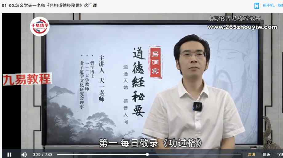| ├──08_天一老师《吕祖道德经秘要》 第1章(下).mp4 266.03M